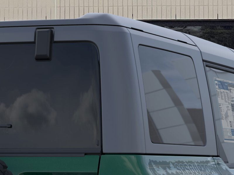 Equipment Group 332A Mid Package: Rear Parking Sensors; Power Outlet - Back Side of Center Floor Console; Dual Smart Charging USB Ports; Front Row Heated Seats; Driver and Front Passenger Illuminated Sliding Visor Vanity Mirrors; AM/FM Stereo; Marine Grade Vinyl Heated Bucket Seats; Dual-Zone Electronic Automatic Temperature Control; Connected Navigation; Ambient Footwell Lighting; Remote Start System; 2-Door Intelligent Access with Lock/unlock. Ford Co-Pilot360: Auto High-Beam Headlamps; Rear View Camera; Pre-Collision Assist with Automatic Emergency Braking; Blind Spot Information System (BLIS); Lane-Keeping System. Sasquatch Package: 17" Carbonized Gray Painted Aluminum Wheels; High Clearance Fender Flares; High Clearance Suspension; 4.7 Final Drive Ratio; LT315/70R17 Rugged-Terrain Tires; Position-Sensitive Bilstein Shock Absorbers. Carbonized Gray Molded-In-color Hard Top. Sasquatch Graphics Package. Hard Top Sound Deadening Headliner. Door Storage Bags. Eruption Green Metallic. **Equipment listed is based on original vehicle build and subject to change. Please confirm the accuracy of the included equipment by calling the dealer prior to purchase.**